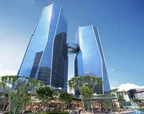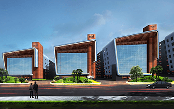 Bhutani Cyberthum is a commercial development in Sector 140A, Noida, featuring North India’s tallest commercial towers. The complex is distinguished by a “Mall in the Sky” connecting the two iconic towers, a large musical fountain, and other modern facilities.